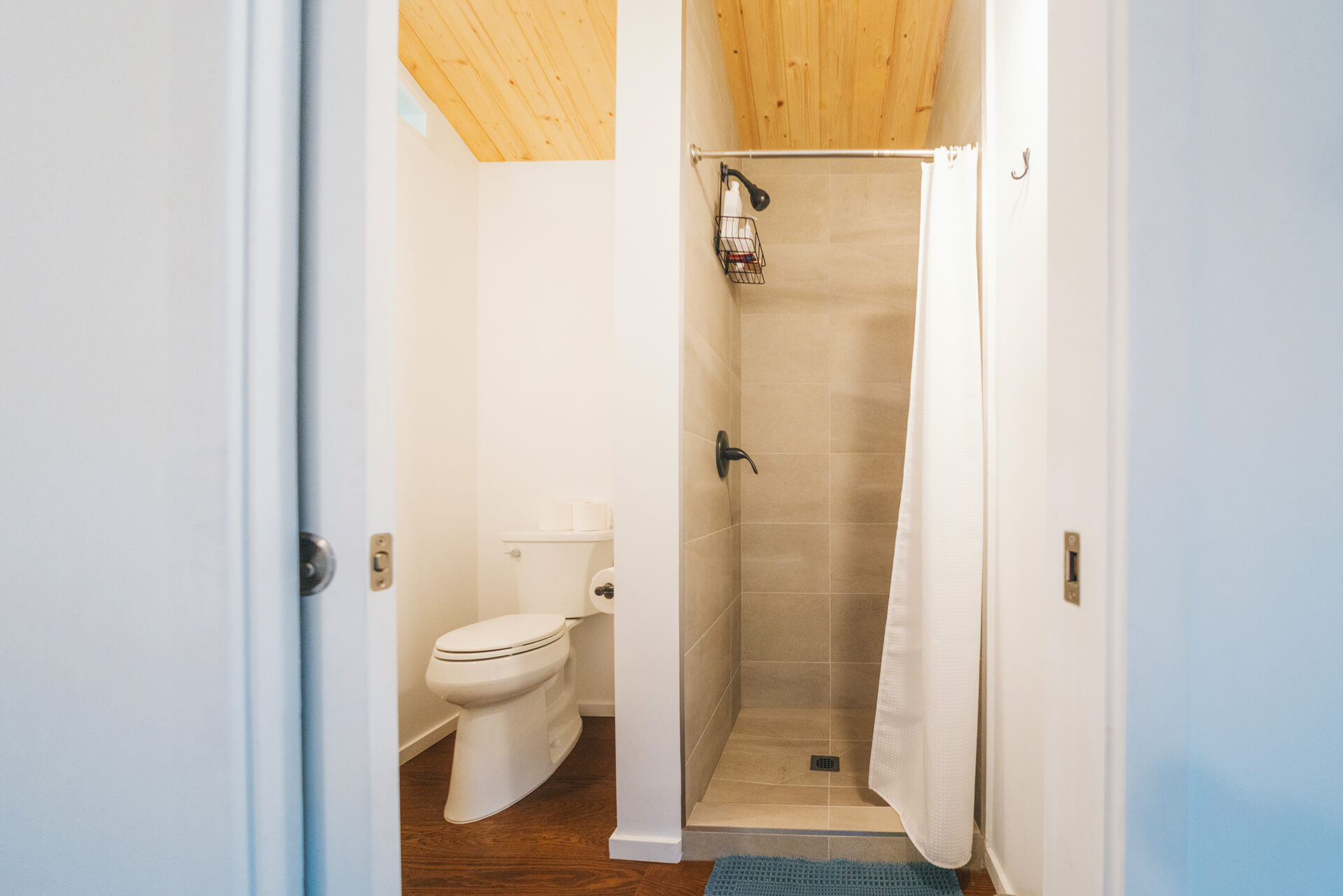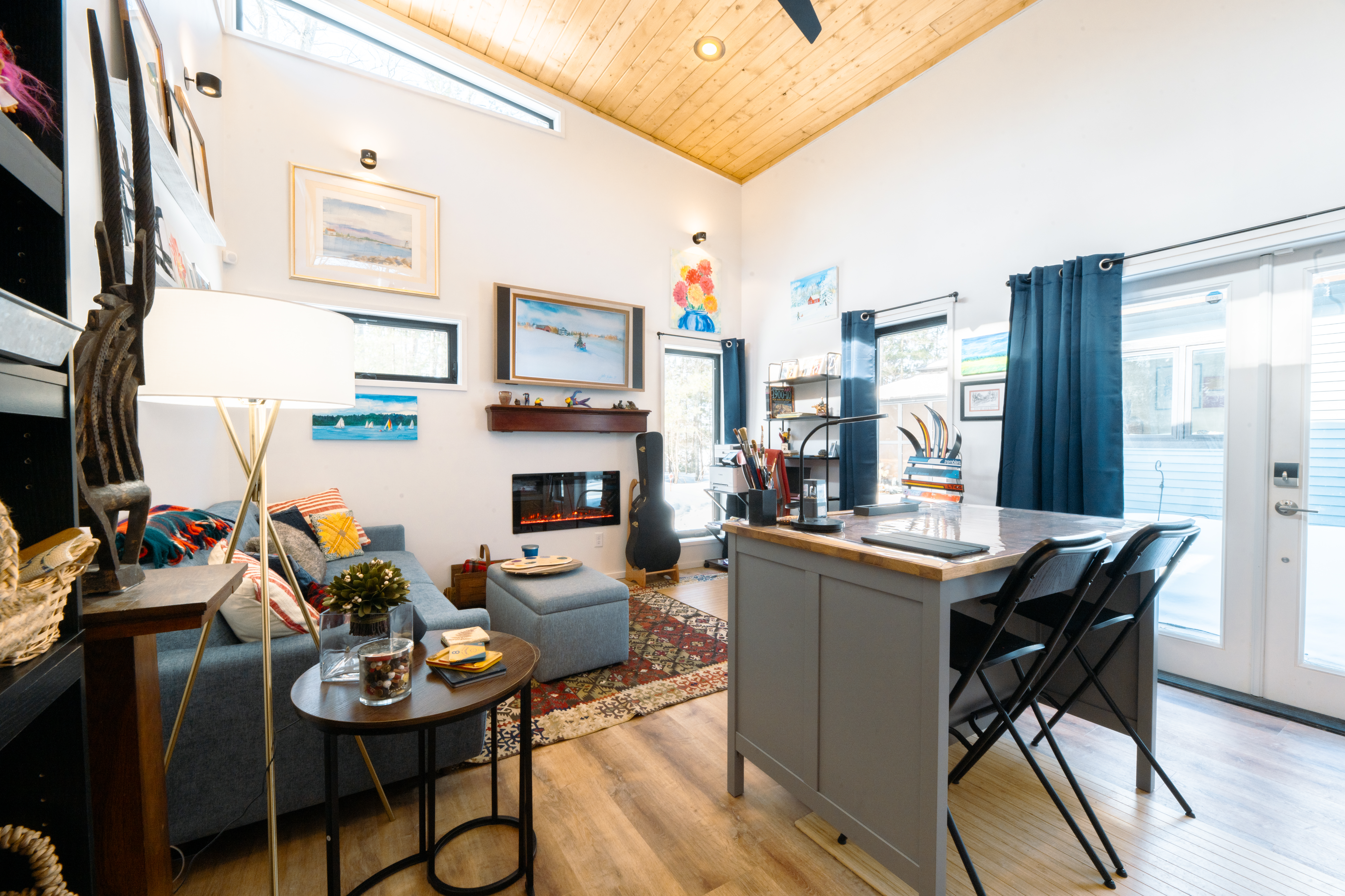Standard pine ceiling liner with optional pre-finished birch faced 1/2″ plywood offers a very warm and inviting vibe to your new space.