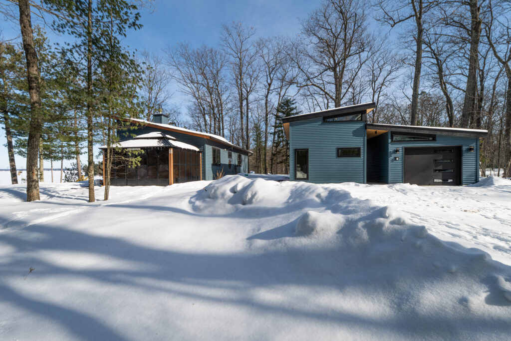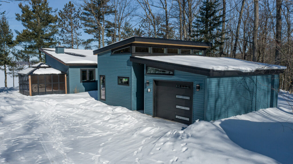 Corrugated metal siding with cedar accents and cedar ceiling liner available for a warm yet modern industrial look.