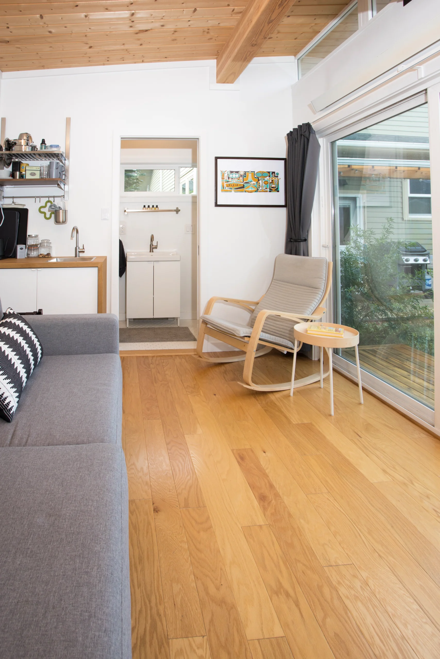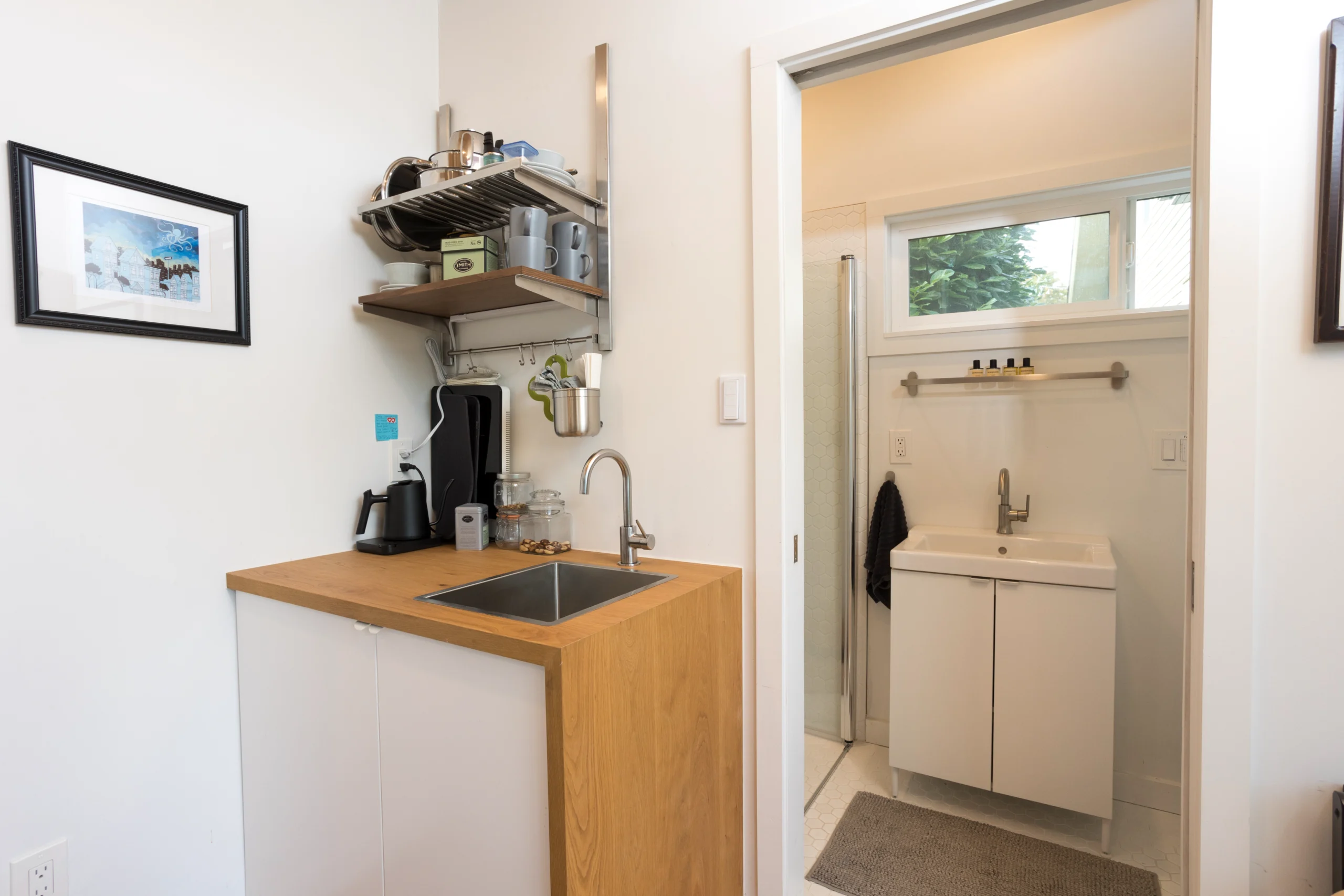 “We started in March 2014 with initial planning and design work that morphed into various design phases; property owner and designer Rebecca Froelich worked closely with the Modern Shed team as she developed the footprint and features of her 325 square foot bungalow. In working with a small footprint, Rebecca had to carefully select and revised every detail based upon spatial and ergonomic characteristics, when inches counted everything requires a close review and evaluation. After finalizing the bungalow plans – 325 square feet of studio, including bathroom and kitchen, Modern Shed broke ground in August and we finished in January of 2015. The vaulted 10 foot ceilings, transom lights and clean, contemporary lines were enhanced by her vision of “Scandinavian Meets Morroccan” aesthetic. Modern Shed and the team were instrumental in bringing this project toward a fantastic finish; an exceptional company.”