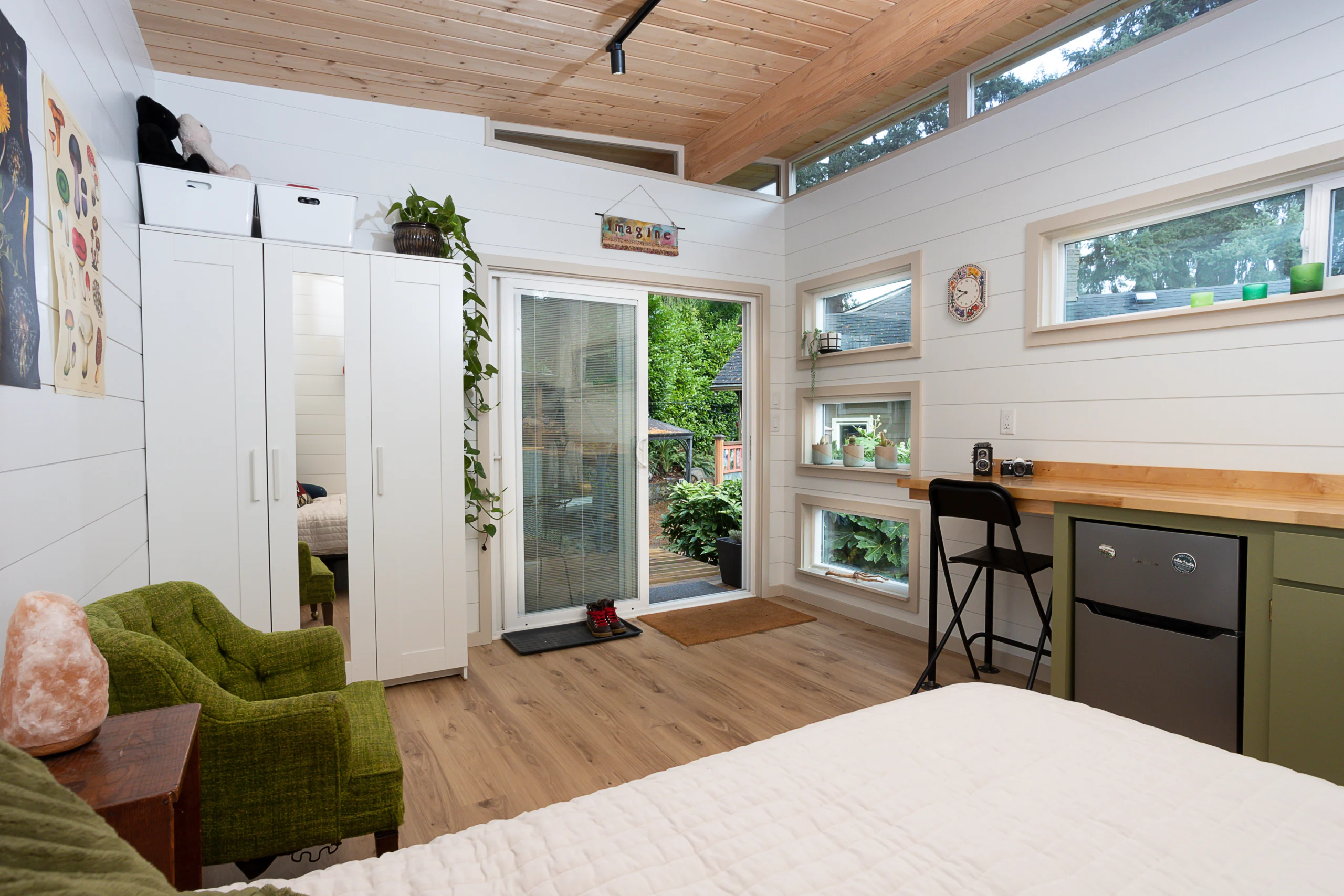 “Jeff worked with us to draw up the plan we wanted. Once the plan was done,, the unit was ordered and Walt showed up with the unit and started construction. He was very knowledgeable regarding the construction of the Modern Shed products and offered some good advice. It all went along smoothly. They anticipated supply chain issues for windows so they weee ordered early in the process. The windows arrived when needed and did not hold up construction. We love our 250 sq.ft. Unit . It was designed to take advantage of our water and Mountain View. Our guests love staying in it.”